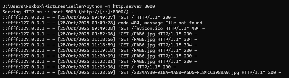 [Mijn programma kan niets met HTTPS verkeer, dus daarom gebruik ik hier Python als Q&D web server.]