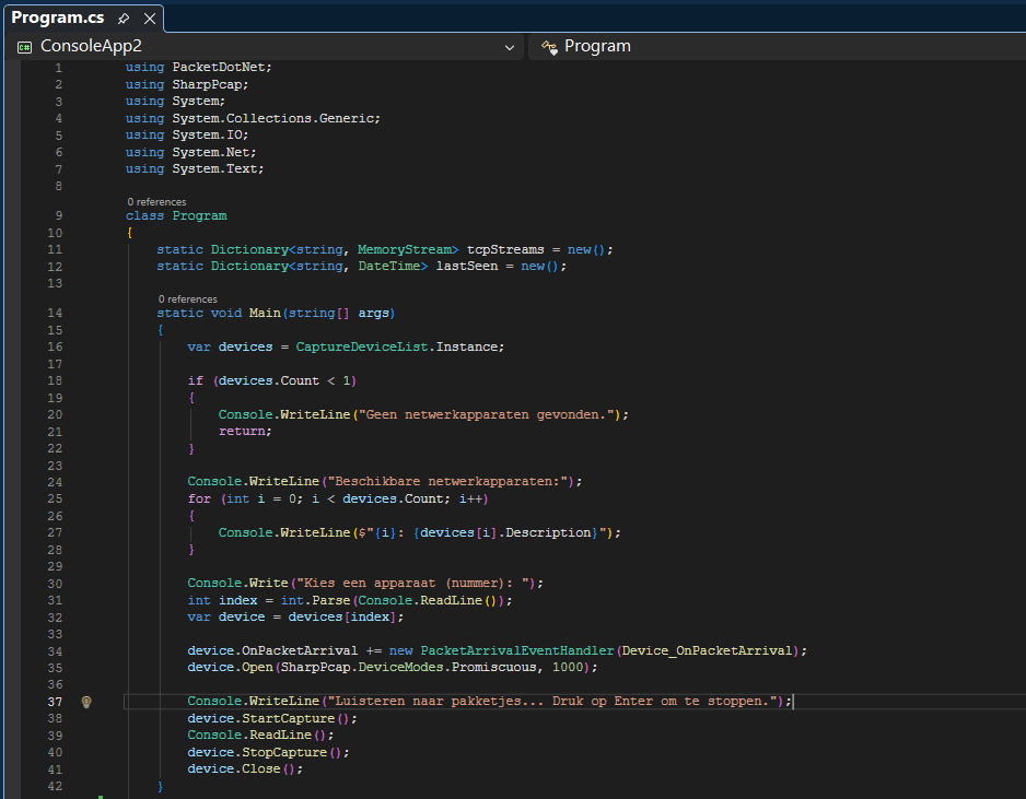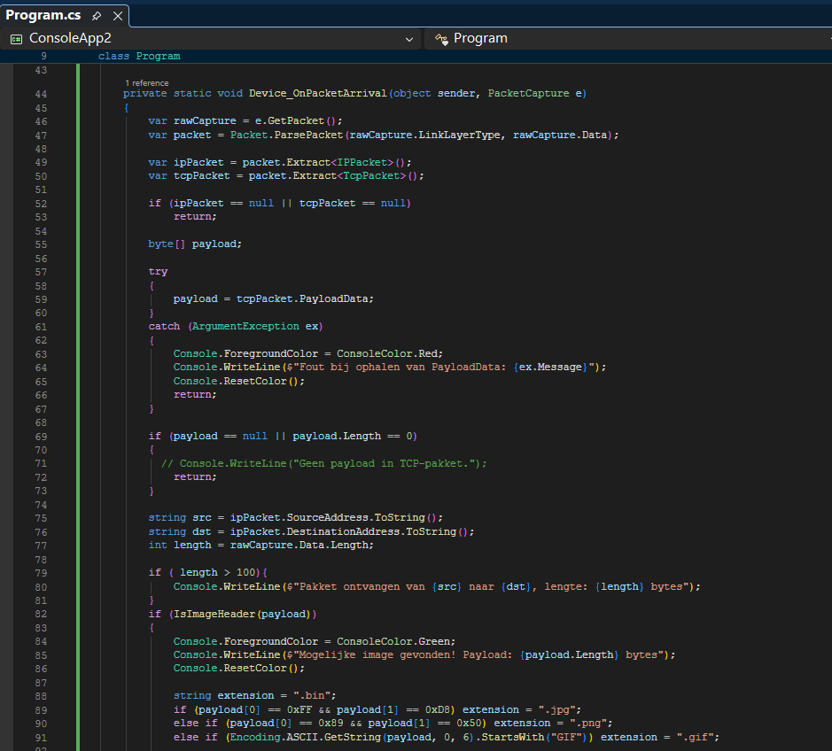 Ik dacht eerst iets te maken met Smalltalk, maar die leercurve is me (nu) iets te stijl (en het lijkt erop dat ik met ‘Ruby‘ iets moderner bezig ben.). Dus het is een ethernet grapje geworden: een C# programma die in the ethernet data zoekt naar een plaatje.