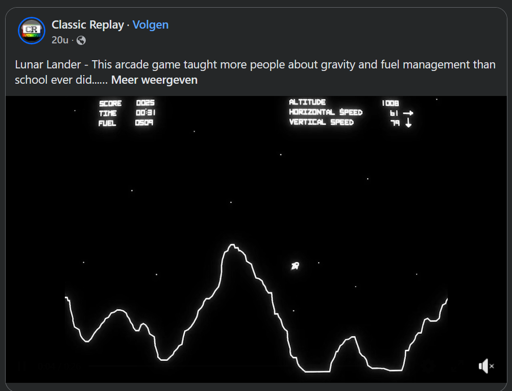 In mijn Facebook bubbel verscheen vandaag plots een screenshot van “Lunar Landing”. Bedriegelijk simpel, maar je crashed gegarandeerd vaker dan je verwacht.